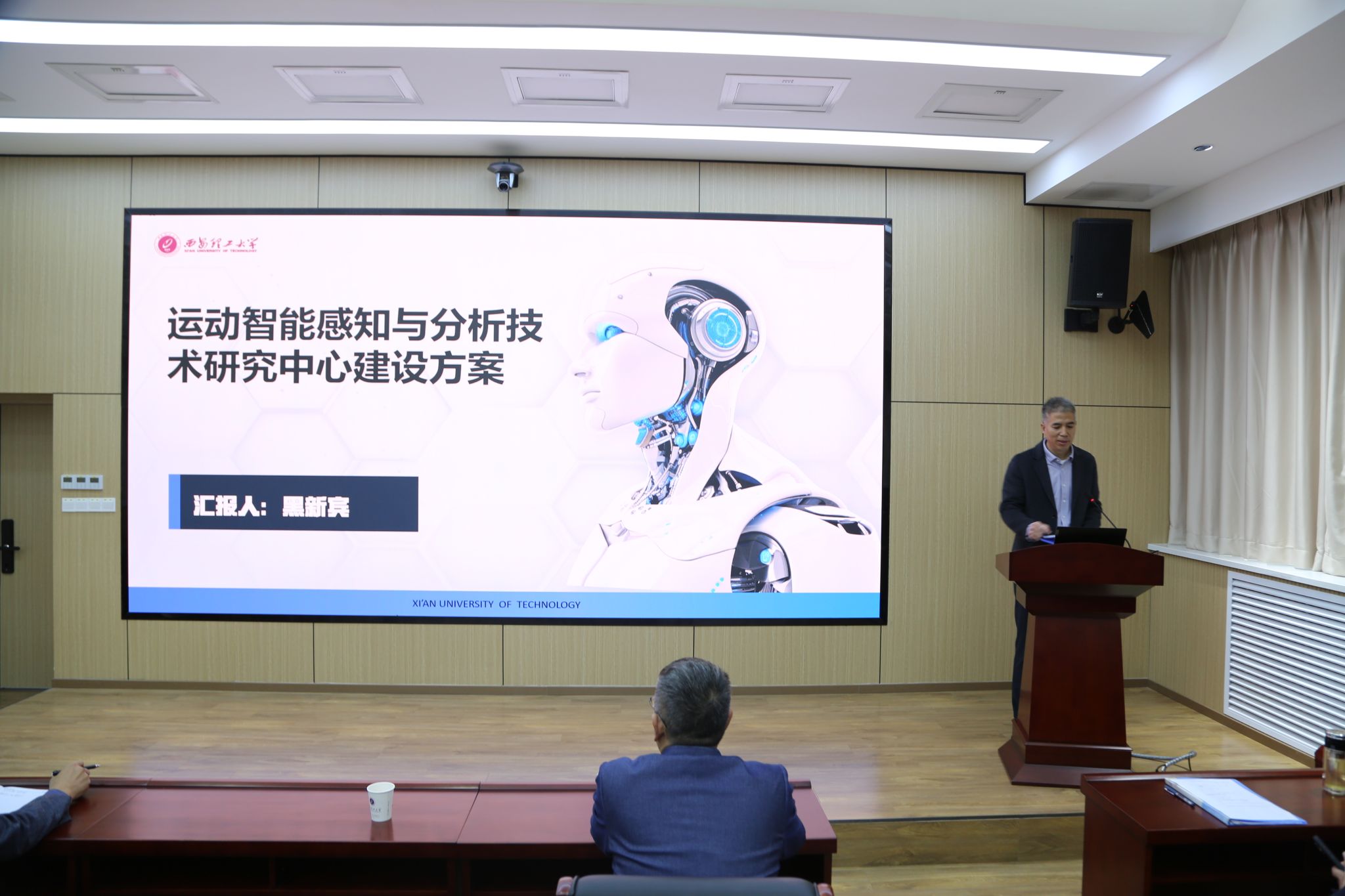研究中心负责人黑新宾详细介绍了《运动智能感知与分析技术研究中心发展规划》。主要围绕研究中心成立的背景、组织架构、主要研究方向、建设任务和发展目标、及存在的问题等方面进行了汇报。